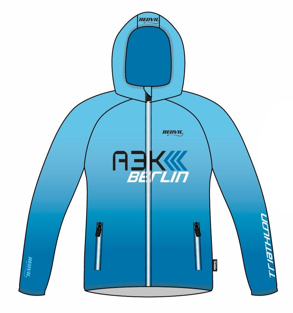 - Arm-, Bund- + Kapuzenabschluss fixiert mit sehr dünnem Gummiband